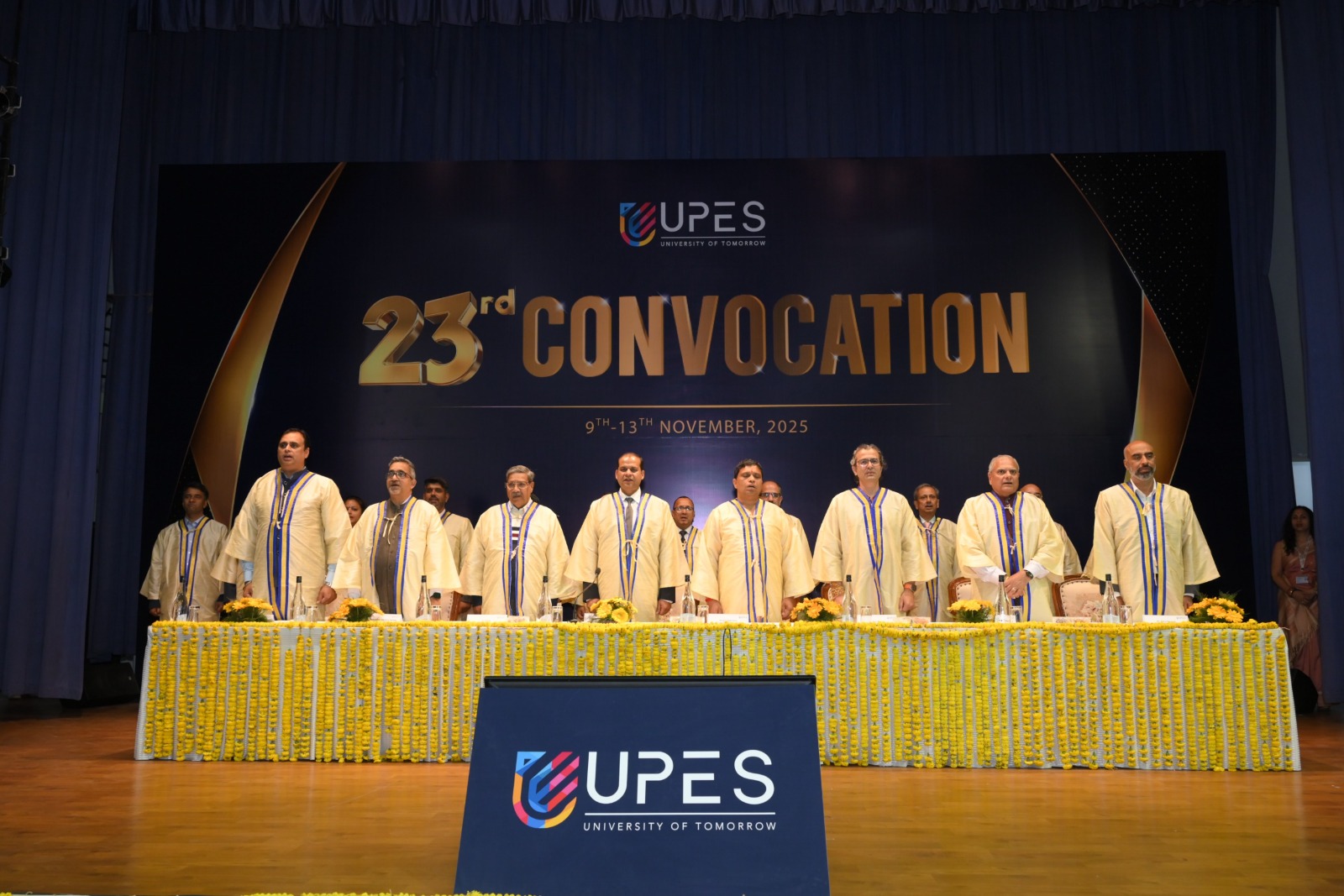 हरिद्वार। उत्तराखण्ड का अग्रणी विश्वविद्यालय यूपीईएस (यूर्निवसिटी ऑफ पैट्रोलियम एनर्जीै स्टीडज) जो देश ही नहीं विश्व रैंकिग में शुमार होता है,इसके स्कूल ऑफ बिज़नेस के 23वें दीक्षांत समारोह में पतंजलि योगपीठ के महामंत्री आचार्य बालकृष्ण जी ने मुख्य अतिथि के रूप में भाग लिया जहाँ उन्हें उनकी अभूतपूर्व उपलब्धियों के लिए सर्वाेच्च शैक्षणिक डिग्री-डॉक्टर ऑफ फिलॉसफी (पी.एच-डी मानद उपाधि) उपाधि से सम्मानित किया गया।कार्यक्रम स्थल पहुँचने पर यूपीईएस प्रबंधन,विद्यार्थियों एवं शिक्षकगणों ने आचार्य जी का स्वागत अभिनंदन किया।इस अवसर पर आचार्य जी ने विद्यार्थियों को सम्बोधित करते हुए कहा कि सेवा में निरंतरता,सेवा में समर्पण तथा सेवा में संलग्नता ही हमारी शक्ति है।श्रद्धेय स्वामी जी के नेतृत्व में पतंजलि के लाखों भाई-बहनों के तप व पुरुषार्थ से पतंजलि विश्वव्यापी सेवा कार्यों को मूर्त रूप प्रदान कर रहा है। उन्होंने कहा कि इस प्रकार के सम्मान हमें और दृढ़ता से अपने सेवा कार्यों को आगे बढ़ाने के प्रति प्रेरित करते हैं। कार्यक्रम में यूपीईएस के कुलपति डॉ.राम शर्मा ने मानवता की सेवा में आचार्य जी के समर्पण एवं निःस्वार्थ योगदान की सराहना करते हुए कहा कि आपसे प्रेरणा प्राप्त कर स्रातक छात्र-छात्राएँ अपने जीवन कि नयी पारी नव-ऊर्जा के साथ आरंभ करने के लिए प्रेरित होंगे।पतंजलि मॉडल भारतीय परंपराओं के अनुरूप ग्राहकों के विश्वास को और मजबूती से आगे बढ़ाता है।देश के प्रतिष्ठित उद्यमी आज पतंजलि मॉडल से प्रेरणा ले रहे हैं।इस सम्मान के लिए आचार्य जी ने विश्वविद्यालय के कुलाधिपति डॉ.सुनील रॉय,कुलपति डॉ.राम शर्मा,प्रति कुलपति डॉ.जय शंकर,कुलसचिव प्रो.मनीष मदान,निदेशक स्कूल बिजनेस प्रो.राहुल नैनवाल,डीन-रिसर्च डॉ.अश्विनी नांगिया,एमडी,स्क्लम्बर्गर ललित अग्रवाल तथा गवर्निंग बॉडी के सदस्यों तथा सभी विद्यार्थियों का धन्यवाद ज्ञापित किया।