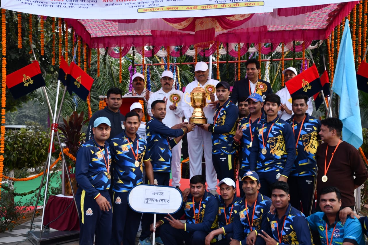 मुज़फ्फरनगर। जनपद मुजफ्फरनगर पुलिस क्रिकेट टीम ने मेरठ ज़ोनल क्रिकेट प्रतियोगिता के फाइनल मुकाबले में हापुड़ पुलिस टीम को हराकर खिताब अपने नाम किया।44 वीं वाहिनी पीएसी मेरठ के क्रिकेट ग्राउंड में 09 नवंबर से 30 नवंबर तक आयोजित इस प्रतियोगिता में मेरठ ज़ोन के सात जनपदों मेरठ,बागपत,बुलंदशहर, हापुड़,सहारनपुर, मुज़फ्फरनगर एवं शामली की टीमों ने भाग लिया।फाइनल मुकाबले में मुज़फ्फरनगर पुलिस टीम ने पहले बल्लेबाज़ी करते हुए 20 ओवर में 5 विकेट के नुकसान पर 165 रन का मजबूत स्कोर खड़ा किया।टीम की ओर से आरक्षी मंजीत ने 55 रन और आरक्षी अंकित त्यागी ने 12 गेंदों में तेज़तर्रार 27 रन की पारी खेली।जवाब में लक्ष्य का पीछा करने उतरी हापुड़ पुलिस टीम 19.2 ओवर में 152 रन पर ऑल आउट हो गई।मुज़फ्फरनगर पुलिस की जीत में आरक्षी जगत की घातक गेंदबाज़ी सबसे अहम रही जिन्होंने मात्र 13 रन देकर 4 विकेट झटके।वहीं आरक्षी अर्जुन ने 2 विकेट प्राप्त किए।उत्कृष्ट प्रदर्शन के आधार पर आरक्षी जगत को मैन ऑफ द मैच घोषित किया गया।पूरी प्रतियोगिता में बेहतरीन ऑलराउंड खेल का प्रदर्शन करने वाले आरक्षी विवेक को मैन ऑफ द सीरीज तथा बेस्ट बॉलर चुना गया।उन्होंने टूर्नामेंट में 111 रन बनाए और 7 विकेट हासिल किए।टीम की सफलता में मुख्य आरक्षी मनीष राणा की शानदार कप्तानी और रणनीति विशेष रूप से सराही गई।मुख्य अतिथि एडीजी मेरठ भानु भास्कर द्वारा विजेता मुज़फ्फरनगर पुलिस टीम को ट्रॉफी प्रदान कर सम्मानित किया गया,साथ ही रनर-अप हापुड़ टीम को भी सम्मानित किया गया।आयोजन में ग्राउंड स्टाफ और अंपायरों को भी उनके योगदान के लिए सम्मान दिया गया।इसके उपरांत सभी टीमों ने सलामी मंच के सामने से मार्च पास्ट कर मुख्य अतिथि एडीजी मेरठ भानु भास्कर को सलामी दी।इस अवसर पर पुलिस डीआइजी मेरठ परिक्षेत्र कलानिधी नैथानी,वरिष्ठ पुलिस अधीक्षक मेरठ विपिन टाडा,सेनानायक 44 वीं वाहिनी पीएसी तथा वरिष्ठ पुलिस अधीक्षक मुज़फ्फरनगर संजय कुमार वर्मा उपस्थित रहे।मैच में शानदार जीत के बाद वरिष्ठ पुलिस अधीक्षक मुज़फ्फरनगर ने विजेता टीम की सराहना करते हुए खिलाड़ियों का उत्साहवर्धन किया और भविष्य में भी इसी टीम भावना के साथ प्रदर्शन जारी रखने की प्रेरणा दी।