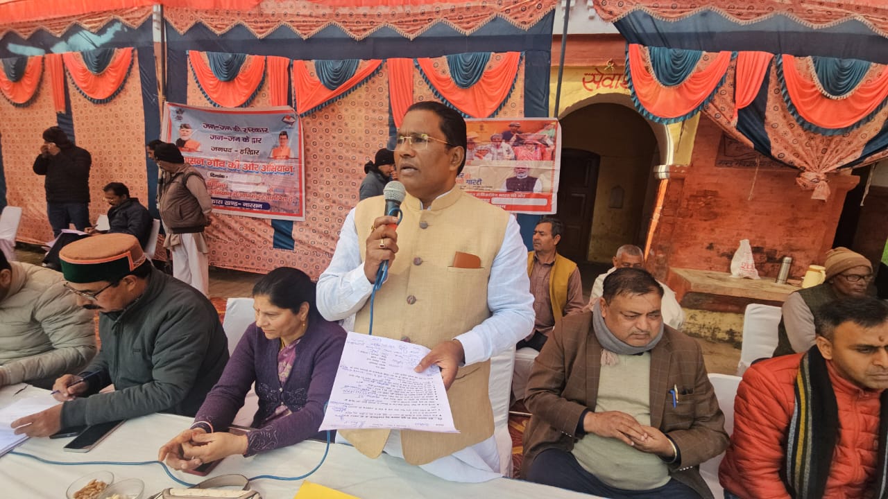 हरिद्वार। अपर जिलाधिकारी प्रशासन पीआर चौहान की अध्यक्षता में विकास खंड नारसन के न्याय पंचायत नारसन कलां के जूनियर हाई स्कूल में जन-जन की सरकार,जन-जन के द्वार शिविर में विभिन्न विभागों के माध्यम से संचालित जन कल्याणकारी योजनों से 237क्षेत्रवासियों को लाभान्वित तथा विभिन्न विभागों के माध्यम से 56लोगों को विभिन्न प्रमाण पत्र निर्गत किए गए,इस शिविर में 2209लोगों द्वारा किया गया प्रतिभाग।शिविर में क्षेत्रवासियों द्वारा विभिन्न विभागों से संबंधित 68समस्याएं दर्ज कराई गई,जिसमें 29समस्याओं का मौके पर निस्तारण किया गया,शेष समस्याओं को त्वरित निस्तारण हेतु संबंधित विभागों को प्रेषित किया गया। बहुउद्देशीय शिविर को संबोधित करते हुए समाज कल्याण योजनाएं अनुश्रवण समिति उपाध्यक्ष, (राज्यमंत्री स्तर) देशराज कर्णवाल ने कहा कि मुख्यमंत्री पुष्कर सिंह धामी के निर्देशानुसार प्रदेश की सभी न्याय पंचायतों में यह अभियान संचालित किया जा रहा है।अभियान का मुख्य उद्देश्य विभिन्न विभागों द्वारा संचालित जन-कल्याणकारी योजनाओं का लाभ पात्र नागरिकों तक पहुँचाना तथा उनकी समस्याओं का त्वरित समाधान सुनिश्चित करना है।उन्होंने कहा कि बहुउद्देशीय शिविर के माध्यम से विभिन्न विभागों की योजनाओं के अंतर्गत सैकड़ों क्षेत्रवासियों को लाभान्वित किया गया।शिविर के दौरान क्षेत्रवासियों द्वारा कुल 68समस्याएं दर्ज कराई गईं। पानी की टंकी,आधार कार्ड,राशन कार्ड,वृद्धावस्था पेंशन,विधवा एवं दिव्यांग पेंशन,किसान सम्मान निधि,भूमि विवाद,अतिक्रमण,विद्युत विभाग के बिल,जलभराव, चकरोड़,साफ-सफाई तथा राजस्व भूमि से संबंधित समस्याएं प्रमुख रहीं।इनमें से लगभग 29 समस्याओं का मौके पर ही निस्तारण अपर जिलाधिकारी प्रशासन एवं संबंधित विभागों के अधिकारियों द्वारा किया गया,जबकि शेष समस्याओं के शीघ्र समाधान हेतु उन्हें संबंधित विभागों को अग्रसारित किया गया।राज्यमंत्री द्वारा शिविर में लगाए गए विभिन्न विभागों के स्टालों का भी निरीक्षण किया।अपर जिलाधिकारी प्रशासन पीआर चौहान ने संबंधित अधिकारियों को कहा कि जिन शिकायतों का कार्यक्रम में निस्तारित नहीं हो पाया है उन शिकायतों का तत्परता से निराकरण करना सुनाश्चित करे। शिविर में अध्यक्ष रूडकी डॉ.मधु सिंह,संचित,सुनील,अंशुल,आशीष,आशुतोष,विवेक,खंड विकास अधिकारी आलोक गार्गेय सहित समस्त ग्राम प्रधानगण,पंचायत सदस्यगण, अधिकारी-कर्मचारी एवं बड़ी संख्या में स्थानीय नागरिक उपस्थित रहे।