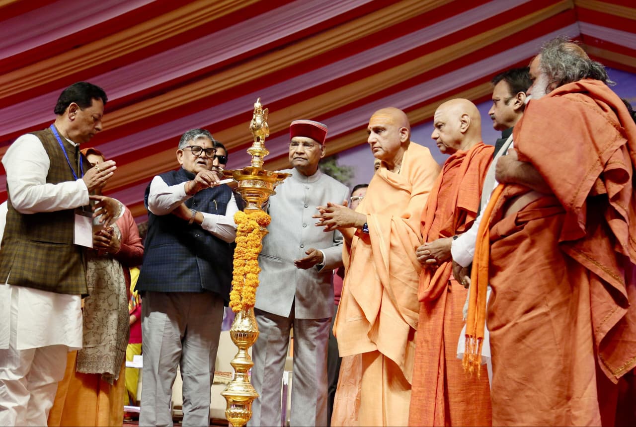 हरिद्वार। सप्तसरोवर क्षेत्र स्थित सप्तऋषि मैदान में ब्रह्मलीन करुणामूर्ति,भगवद्पादाचार्य परम्परा के दिव्य संवाहक,वैदिक सनातन धर्म-संस्कृति के तेजस्वी प्रवक्ता,भारत माता मन्दिर के संस्थापक,पद्मभूषण से अलंकृत,निवृत्त शंकराचार्य,पूज्य श्रीमत्परमहंस परिव्राजकाचार्य,श्रोत्रिय- ब्रह्मनिष्ठ,अनन्तश्रीविभूषित परम गुरुदेव स्वामी सत्यमित्रानन्दगिरि जी महाराज की पुण्य स्मृतियों को चिरस्थायी एवं अक्षुण्ण स्वरूप प्रदान करने हेतु आयोजित त्रिदिवसीय“गुरुदेव समाधि मन्दिर-मूर्ति स्थापना महोत्सव” (04,05 एवं 06फरवरी, 2026) का भव्य शुभारम्भ भारत गणराज्य के 14वें राष्ट्रपति महामहिम रामनाथ कोविन्द के कर-कमलों द्वारा सम्पन्न हुआ।यह त्रिदिवसीय कार्यक्रम भारत माता मन्दिर-समन्वय सेवा ट्रस्ट एवं भारत माता जनहित ट्रस्ट के अध्यक्ष ,श्रीमत्परमहंस परिव्राजकाचार्य,अनन्तश्रीविभूषित जूनापीठाधीश्वर आचार्य महामण्डलेश्वर स्वामी अवधेशानन्द गिरि जी महाराज के पावन सान्निध्य में आयोजित किया जा रहा है।कार्यक्रम का शुभारम्भ भारत माता मन्दिर से सप्तऋषि मैदान स्थित आयोजन स्थल तक निकाली गई भव्य शोभायात्रा से हुआ,जिसमें श्रद्धालुओं एवं संत समाज की विशाल उपस्थिति रही।तत्पश्चात भारत गणराज्य के 14वें राष्ट्रपति महामहिम रामनाथ कोविन्द ने ब्रह्मलीन गुरुदेव के समाधि स्थल“राघव कुटीर”में दर्शन-पूजन कर राष्ट्रहित एवं जनकल्याण की कामना की।कार्यक्रम स्थल पर पधारकर समारोह को गरिमा प्रदान की।महामहिम रामनाथ कोविन्द ने ब्रह्मलीन परम गुरुदेव को राष्ट्र की अमूल्य विभूति बताते हुए कहा कि उन्होंने भारत माता मन्दिर की स्थापना कर राष्ट्र की चेतना,एकता एवं अखण्डता को सुदृढ़ करने का कार्य किया।उन्होंने समाज के वंचित,उपेक्षित एवं शोषित वर्ग तक सेवा और सहायता पहुँचाने का प्रेरणादायी कार्य किया। उन्होंने कहा कि गुरुदेव की मूर्ति स्थापना केवल श्रद्धा का प्रतीक ही नहीं, बल्कि भावी पीढ़ियों के लिए राष्ट्रनिर्माण की प्रेरणा भी है।इस अवसर पर मुख्यमंत्री देवेन्द्र फडणवीस ने पूज्य गुरुदेव के द्वारा अन्न,अक्षर और विशेषतःस्वस्थ के प्रति किये गए कार्यों की सराहना की तथा इसे समाज एवं राष्ट्र के उत्थान में विशेष सहयोग बताया। इस अवसर पर मंच से महाराष्ट्र के मुख्यमंत्री देवेंद्र फडणवीस ने कहा कि उनके लिए गौरव का क्षण है कि वो ब्रह्मलीन स्वामी सत्यमित्रानंद गिरी की समाधि स्थल पर उनकी मूर्ति स्थापना समारोह में शिरकत करने का अवसर मिला।उन्होंने कहा स्वामी सत्यमित्रानंद गिरी महाराज ने अध्यात्म के साथ साथ राष्ट्र के विकास के लिए भी प्रचार प्रसार किया।उन्होंने भारत माता मंदिर की स्थापना करके सनातन सं