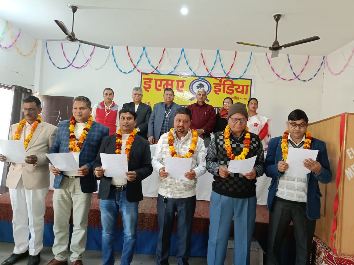हरिद्वार। इएमए हरिद्वार की नव निर्वाचित जिला कार्यकारिणी का शपथ ग्रहण समारोह आयोजित किया गया।इएमए कैम्प कार्यालय बालाजी इंस्टीट्यूट आफ अल्टरनेटिव मेडिकल साइंस एंड रिसर्च सेंटर के सभागार में आयोजित शपथ ग्रहण समारोह का शुभारम्भ एडीजीसी एडवोकेट कुशलपाल सिंह चौहान,एसोसिएशन के राष्ट्रीय अध्यक्ष डा.केपीएस चौहान,राष्ट्रीय महासचिव डा.एनएस टाकुली,राष्ट्रीय कोषाध्यक्ष डा.वीएल अलखानिया ने संयुक्त रुप से दीप प्रज्वलित कर किया।एडवोकेट कुशलपाल सिंह चौहान ने जिलाध्यक्ष डा.आदेश शर्मा,जिला उपाध्यक्ष डा.विक्रम चौहान,जिला महामंत्री डा.चांद उस्मान,जिला सचिव डा.अशोक कुशवाहा,जिला कोषाध्यक्ष गुलाम साबिर,जनपद प्रभारी डा.अमरपाल अग्रवाल को शपथ दिलायी।समारोह को सम्बोधित करते हुए एडीजीसी कुशलपाल सिंह चौहान ने कहा कि चिकित्सक का इलाज करना तथा रोगी का अपना इलाज कराना, दोनों का मौलिक संवैधानिक अधिकार है। आज कल चिकित्सक एवं रोगी के मध्य विश्वास की कमी के चलते चिकित्सा संस्थानों में विवाद की घटनाएं हो रही हैं।राष्ट्रीय अध्यक्ष डा.केपीएस चौहान ने कहा कि रोगी और चिकित्सक के बीच भक्त और भगवान जैसा रिश्ता होता है। चिकित्सकों को रोगी के साथ मधुर व्यवहार एवं संवाद कायम करना चाहिए।रोगी की आधी बीमारी चिकित्सक की मीठी बातों एवं दिलाये गये विश्वास से ही ठीक हो जाती है। समारोह का संचालन केंद्रीय कार्यालय प्रभारी डा.ऋचा आर्य ने किया।समारोह मे डा.हीना कुशवाहा,डा.बीबी कुमार,डा.हरबंस सिंह,डा.कमलेश शर्मा,डा.अंशुल कौशिक,डा.सुनील अग्रवाल ,डा.लक्ष्मी,डा.नीलम भारती,डा.अरसलान,डा.मोनिका सहित अनेक लोग मौजूद रहे।