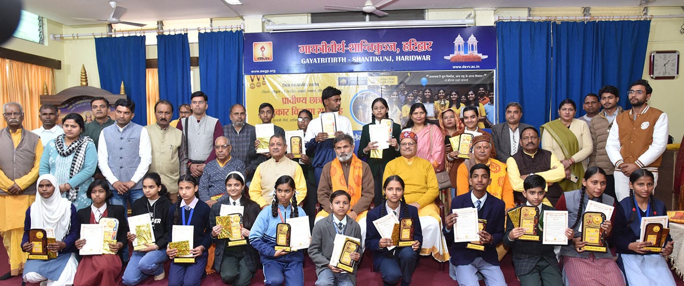 हरिद्वार। गायत्री तीर्थ शांतिकुंज में भारतीय संस्कृति ज्ञान परीक्षा (भासंज्ञाप) में प्रावीण्य सूची में आये विद्यार्थियों हेतु पुरस्कार सम्मान समारोह का आयोजन हुआ।इस अवसर पर हरिद्वार, भगवानपुर, रुडक़ी एवं लक्सर तहसील के 105 मेधावी विद्यार्थियों सहित शैक्षणिक संस्थानों को सम्मानित किया गया।जिन्होंने अपनी बौद्धिक क्षमता और सांस्कृतिक बोध के साथ परीक्षा में प्रथम,द्वितीय,तृतीय एवं विशिष्ट स्थान प्राप्त किया।इसके साथ ही शिक्षा क्षेत्र में सक्रिय सहभागिता निभाने वाले 100 से अधिक विद्यालयों एवं शैक्षणिक संस्थानों की सराहना की गई। शिक्षा के प्रति समर्पण और प्रभावी नेतृत्व के लिए 29 प्रधानाचार्यों को विशिष्ट सम्मान से अलंकृत किया गया।अखिल विश्व गायत्री परिवार प्रमुखद्वय श्रद्धेय डॉ.प्रणव पण्ड्या एवं श्रद्धेया शैलदीदी ने प्रावीण्य सूची में आये सभी विद्यार्थियों को बधाई दी।पुरस्कार समारोह को संबोधित करते हुए शांतिकुंज व्यवस्थापक योगेंद्र गिरि ने कहा कि संस्कारों से ही संस्कृति बचेगी। इसलिए विद्यार्थी जीवन में संस्कारों पर ध्यान देना चाहिए।उन्होंने अभिभावकों से कहा कि बच्चों के सुप्तावस्था के संस्कारों को विकसित परिष्कृत करने के लिए गायत्री महामंत्र का जप, ध्यान व लेखन सर्वाेत्तम उपाय है।उन्होंने कहा कि शिक्षा के अलावा विद्या (जीवन जीने की कला) का समावेश विद्यार्थी जीवन में समावेश करना चाहिए,जिससे उनका व्यक्तित्व निखर सके।समारोह के दौरान वक्ताओं ने बौद्धिक विकास के साथ-साथ चारित्रिक उत्थान की आवश्यकता पर बल दिया।भासंज्ञाप विभाग समन्वयक ने बताया कि भारतीय संस्कृति ज्ञान परीक्षा में सम्मिलित हरिद्वार,भगवानपुर,लक्सर,रुडकी तहसील के प्रावीण्य सूची में स्थान बनाने वाले 105विद्यार्थियों को प्रशस्ति पत्र, नगद राशि आदि भेंटकर सम्मानित किया गया। जनपद के बीएसएम इंटर कॉलेज रुडकी,नेशनल इंटर कॉलेज खानपुर,स्प्रिंग फिल्ड स्कूल बहादराबाद ,गायत्री विद्यापीठ शांतिकुंज, डिवाइन लाइट स्कूल जगजीतपुर,डीपीएस भेल, विज्डम ग्लोबल स्कूल ज्वालापुर,केन्द्रीय विद्यालय सेक्टर 4बीएचईल,स्वामी हरिहरानंद पब्लिक स्कूल,जवाहर नवोदय स्कूल रोशनाबाद,आईपी जूनियर स्कूल लक्सर सहित 29विद्यालयों के प्रधानाचार्यों को उनके योगदान के लिए विशिष्ट सम्मान से अलंकृत किया गया।कार्यक्रम के उपरांत विद्यार्थियों एवं शिक्षकों ने शांतिकुंज परिसर,सिद्ध अखंड दीप एवं देवसंस्कृति विश्व विद्यालय का भ्रमण किया।शांतिकुंज परिवार द्वारा सभी आगंतुकों का आत्मीय स्वागत किया गया।सम्मानित होने वाले विद्यार्थी-जीकरा मलिक,हर्षित बिष्ट,अंश धीमान,यश पॅवार,अरमान,चंचल,काजल,अपेक्षा गुप्ता,अतुल गिरि,र