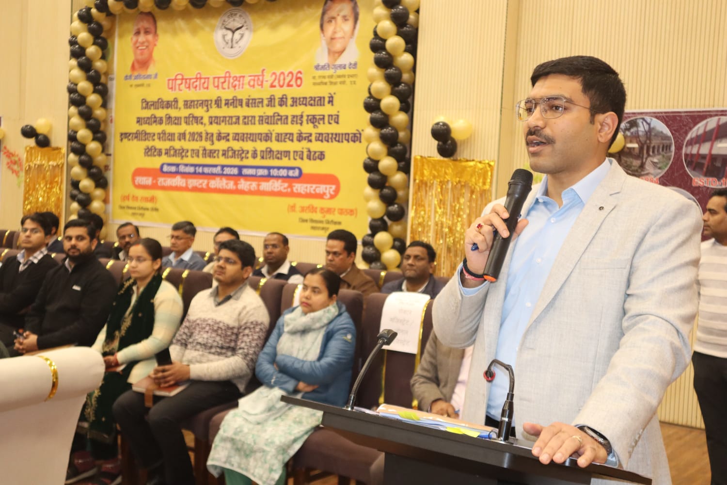 जिलाधिकारी मनीष बंसल आज यहां जीआईसी नेहरू मार्किट सभागार में जनपद स्तर पर उत्तर प्रदेश माध्यमिक शिक्षा परिषद बोर्ड एग्जाम 2026 की प्रशिक्षण एवं बैठक को संबोधित कर रहे थे। जिलाधिकारी द्वारा बोर्ड परीक्षा के दौरान प्रश्न पत्रों को स्ट्रांग रूम में सुरक्षित रखने के संबंध में, परीक्षार्थियों की चेकिंग के सम्बन्ध में कक्षा कक्ष में भ्रमण एवं कक्ष निरीक्षक की ड्यूटी के संबंध में व्यापक निर्देश दिए गए।