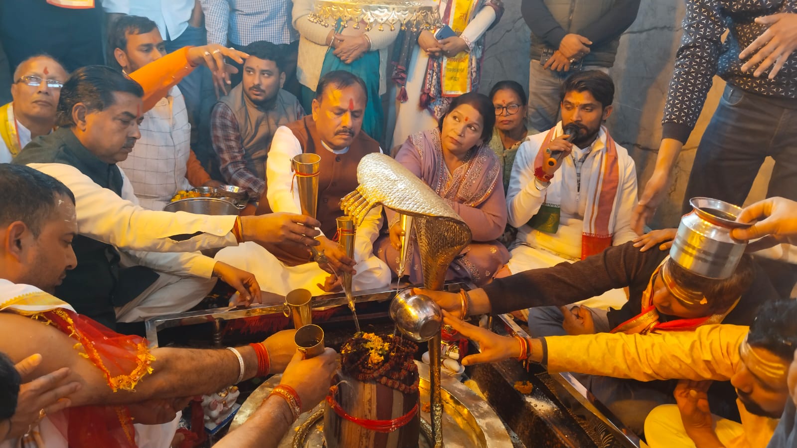 हरिद्वार। ज्वालापुर स्थित राजलोक कॉलोनी मंदिर में मूर्ति प्राण प्रतिष्ठा कार्यक्रम का आयोजन किया गया।कार्यक्रम में मेयर किरण जैसल,विधायक आदेश चौहान,पर्यटन राज्यमंत्री ओमप्रकाश जगदंमनी,भाजपा मंडल अध्यक्ष वरुण वशिष्ठ,पार्षद नागेंद्र राणा, कार्यक्रम संयोजक संदीप शर्मा भी शामिल हुए और भगवान शिव का जलाभिषेक कर पूजा अर्चना की।इस दौरान मेयर किरण जैसल ने कहा कि भगवान शिव सूक्ष्म आराधना से ही प्रसन्न होकर भक्तों की सभी मनोकामनाएं पूर्ण कर देते हें। शिवरात्रि पर भगवान शिव की पूजा अर्चना करने से परिवारों में सुख समृद्धि का वास होता है।उन्होंने कहा कि शारदीय कांवड़ मेले में आए शिव भक्त कावड़ियों को मुख्यमंत्री पुष्कर सिंह धामी के निर्देशन में नगर निगम की और से बेहतर सुविधाएं प्रदान की गयी। विधायक आदेश चौहान ने कहा कि भगवान शिव अपने सभी भक्तों का कल्याण करते हैं। राज्यमंत्री ओमप्रकाश जग्दम्नि ने सभी को शिवरात्रि की बधाई देते हुए कहा कि भगवान शिव की आराधना करने से सभी कष्ट दूर हो जाते हैं। मूर्ति प्राण प्रतिष्ठा कार्यक्र के संयोजक संदीप शर्मा ने सभी अतिथियों का स्वागत किया।