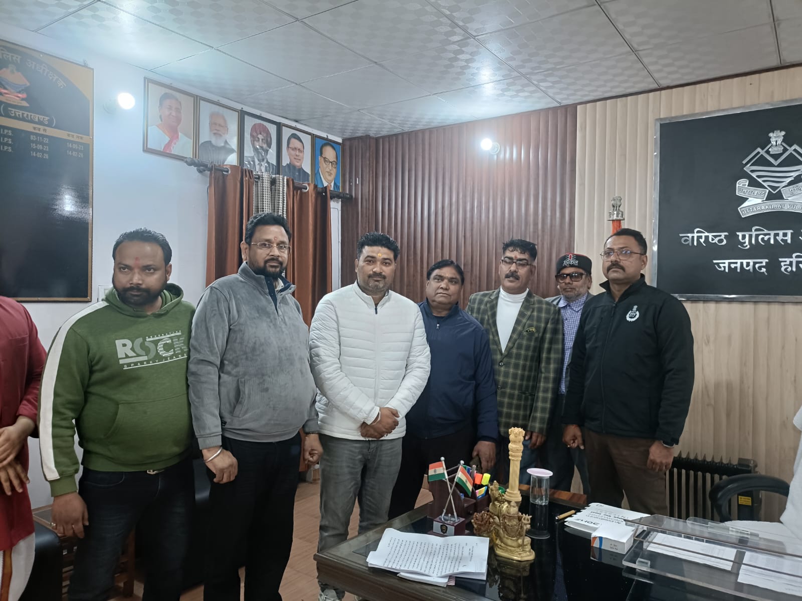 हरिद्वार। जनसंघर्ष मोर्चा के प्रदेश अध्यक्ष गुलशन खत्री के नेतृत्व में मोर्चा पदाधिकारियों के प्रतिनिधिमंडल ने नवनियुक्त वरिष्ठ पुलिस अधीक्षक नवनीत भुल्लर से उनके कार्यालय में शिष्टाचार भेंट की और पुष्पगुच्छ भेंट कर स्वागत किया।इस दौरान एसएसपी से ज्वालापुर निवासी दुष्कर्म पीड़िता को शीघ्र न्याय दिलाने की मांग करते हुए प्रदेश अध्यक्ष गुलशन खत्री ने कहा कि धर्मनगरी में महिलाओं की सुरक्षा सर्वाेच्च प्राथमिकता होनी चाहिए तथा ऐसे जघन्य अपराधों में त्वरित एवं कठोर कार्रवाई सुनिश्चित की जानी चाहिए।वरिष्ठ पुलिस अधीक्षक नवनीत भुल्लर ने प्रतिनिधिमंडल को आश्वस्त किया कि मामले में अधीनस्थ अधिकारियों को आवश्यक दिशा-निर्देश जारी कर दिए गए हैं तथा पीड़ित परिवार को हर संभव न्याय दिलाया जाएगा।उन्होंने कहा कि कानून व्यवस्था से किसी भी प्रकार का समझौता नहीं किया जाएगा और दोषियों को बख्शा नहीं जाएगा।प्रतिनिधिमंडल में पूर्व प्रदेश महामंत्री पुनीत गोयल, मोर्चा के यूथ ब्रिगेड जिलाध्यक्ष नवनीत शर्मा,महेश सैनी,दीपक गोयल,मोहित एवं सौरभ सक्सेना सहित कई पदाधिकारी शामिल रहे।