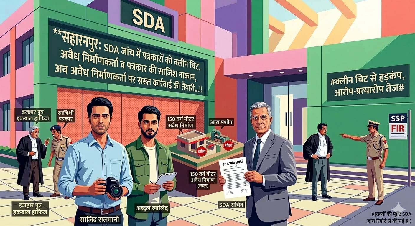 सहारनपुर। सहारनपुर विकास प्राधिकरण (SDA) की गहन जांच ने एक बार फिर सच को सामने ला दिया है। लोकतंत्र के चौथे स्तंभ यानी पत्रकारिता पर हमले की कोशिश पूरी तरह विफल हो गई। पत्रकार साजिद सलमानी और अब्दुल खालिद पर लगे गंभीर आरोप—कि वे फर्जी जेई बनकर अवैध वसूली कर रहे थे—पूरी तरह आधारहीन साबित हुए हैं। SDA सचिव की जांच रिपोर्ट में इन आरोपों के कोई सबूत नहीं मिले, जिससे पत्रकारों को क्लीन चिट मिल गई है।