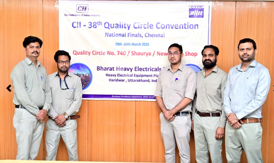 हरिद्वार। बीएचईएल हरिद्वार की हीप इकाई के अंतर्गत न्यू ब्लेड शॉप के गुणता चक्र संख्या 740‘शौर्य’ने,कन्फेडरेशन ऑफ इंडियन इंडस्ट्री (सीआईआई) द्वारा चेन्नई में आयोजित राष्ट्रीय गुणता चक्र सम्मेलन में,ऑनलाइन माध्यम से भाग लेकर प्रथम स्थान प्राप्त किया है।इस सम्मेलन में देशभर से लगभग 40क्वालिटी सर्कल्स ने भाग लिया।बीएचईएल हरिद्वार के कार्यपालक निदेशक रंजन कुमार ने,इस महत्वपूर्ण उपलब्धि पर टीम के सदस्यों को बधाई दी। उन्होंने कहा कि सौरभ (फैसिलिटेटर),ओम कृष्ण निगम (लीडर) तथा सदस्य आशुतोष, अनिल कुमार,पंकज कुमार एवं मोहम्मद अनवर ने,अपनी लगन व मेहनत से बीएचईएल हरिद्वार का नाम रोशन किया है।महाप्रबंधक (टरबाइन)एन.पी.रॉय तथा महाप्रबंधक (क्यू एवं बीई) प्रशांतो माजी ने भी,टीम के उत्कृष्ट कार्य की सराहना की।टीम द्वारा प्रस्तुत केस स्टडी में स्टीम टरबाइन ब्लेड निर्माण हेतु बड़े क्रॉस-सेक्शन ब्लैंक्स की मशीनिंग के लिए,संशोधित हेडस्टॉक क्लैम्पिंग जॉ के विकास को दर्शाया गया,जिससे उत्पादकता एवं गुणवत्ता में उल्लेखनीय वृद्धि हुई है।आनंद कुमार शर्मा(अपर महाप्रबंधक) एवं संजीव कुमार (क्वालिटी सर्कल क्षेत्र समन्वयक) ने भी इस उपलब्धि में महत्वपूर्ण भूमिका निभाई।उल्लेखनीय है कि इससे पूर्व,क्वालिटी सर्कल “शौर्य” ने जनवरी 2026 में चंडीगढ़ में आयोजित उत्तरी क्षेत्रीय फाइनल प्रतियोगिता में भी प्रथम स्थान प्राप्त किया था।