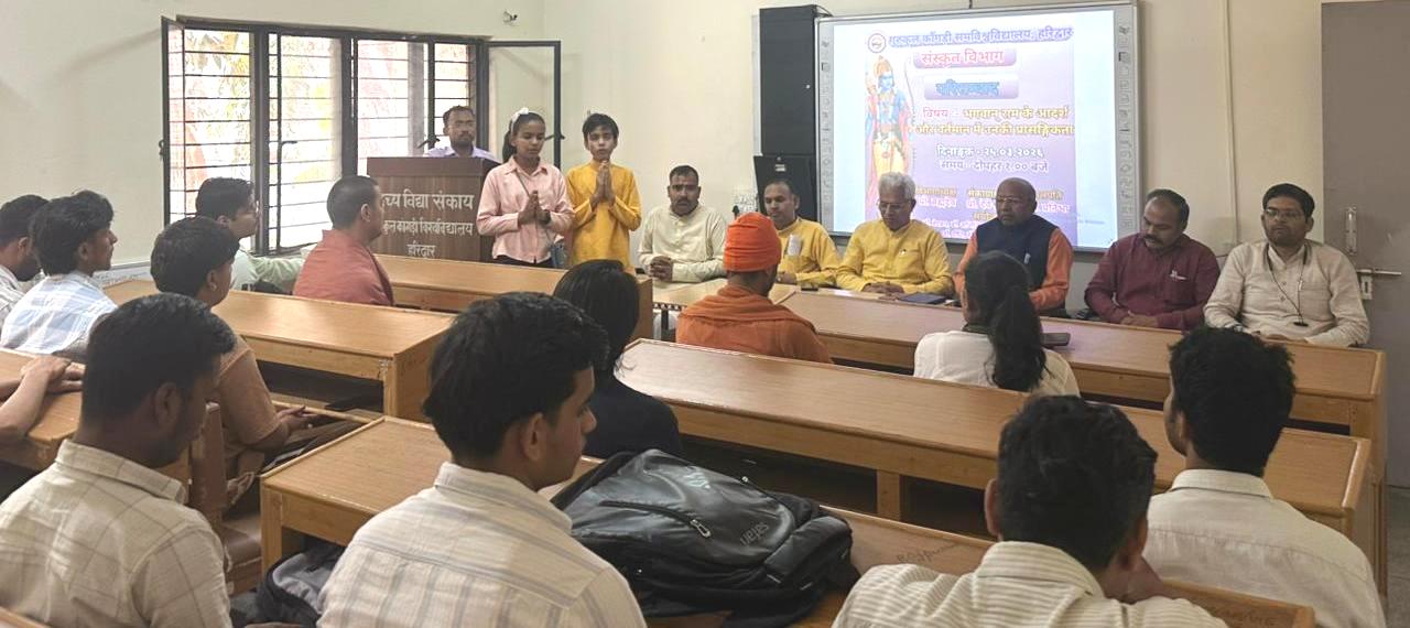हरिद्वार। गुरुकुल कांगड़ी विश्वविद्यालय,के संस्कृत विभाग में रावनवमी के पावन पर्व की पूर्व संध्या पर मर्यादा पुरुषोत्तम राम के आदर्श और वर्तमान में उनकी प्रासंगिकता विषय पर परि संवाद आयोजित किया गया है।कार्यक्रम में आचार्य सत्यपति ने मंगलाचरण के साथ समागत विद्वज्जनों का परिचय प्रस्तुत किया।छात्र गगनदीप,शुभम,इन्द्रदेव एवं सिद्धार्थ की मनोहारिणी प्रस्तुति ने सभी को मन्त्रमुग्ध कर दिया।मुख्यवक्ता के रूप में डॉ.भारत वेदालंकार ने आदर्श राजा के रूप में मर्यादा पुरुषोत्तम राम के व्यक्तित्व पर प्रकाश डाला।प्रजा को अच्छी प्रकार से शासित करने वाला,प्रजा की सेवा करने वाला तथा उसको सुपथ पर चलाने वाला ही आदर्श राजा होता है और ये समस्त गुण मर्यादा पुरुषोत्तम राम में दिखाई देते हैं।डॉ.वेदव्रत ने कहा कि भारतीय संस्कृति का मूल आदर्श परिवार व्यवस्था है।त्याग और नैतिकता के बिना आदर्श परिवार का निर्माण सम्भव नहीं है।मर्यादा पुरुषोत्तम राम का जीवन त्याग एवं नैतिकता की प्रतिमूर्ति है।मर्यादा पुरुषोत्तम राम धर्म के साक्षात् स्वरूपभूत हैं।वर्तमान काल में क्षीण हो रही भारतीय संस्कृति को मर्यादा पुरुषोत्तम राम का जीवन संजीवनी प्रदान कर सकता है।डॉ.विपिन बालियान ने कहा कि आदर्श पिता पुत्र पति भ्राता राजा और मित्र के रूप में मर्यादा पुरुषोत्तम राम का व्यक्तित्व हम सबको प्रेरित करता है।डॉ.सुनीता रानी ने कहा कि माता सीता के बिना मर्यादा पुरुषोत्तम राम का व्यक्तित्व अपूर्ण है।माता सीता ने अपने व्यक्तित्व से यय प्रतिपादित किया कि पति के भाग्य का अनुसरण करना ही स्त्री का परम धर्म है।कार्यक्रम के अध्यक्ष प्रो ब्रह्मदेव ने कहा कि प्रत्येक व्यक्ति में भगवत्ता को प्राप्त करने का सामर्थ्य है।किन्तु इस भगवत्ता को प्राप्त करने के लिए मर्यादा पुरुषोत्तम राम के जीवन में विद्यमान धृति,क्षमा, समदर्शिता, त्याग,स्नेह,आज्ञा पारायणता,संयमता,पराक्रमता,दिव्यता आदि गुणों को व्यक्ति को अपने जीवन में धारण करने की आवश्यकता है।अन्त में डा.भूपेन्द्र ने समागत सभी विद्वानों और छात्रों का धन्यवाद व्यक्त किया। कार्यक्रम का सञ्चालन डा.अभिजित् ने किया।