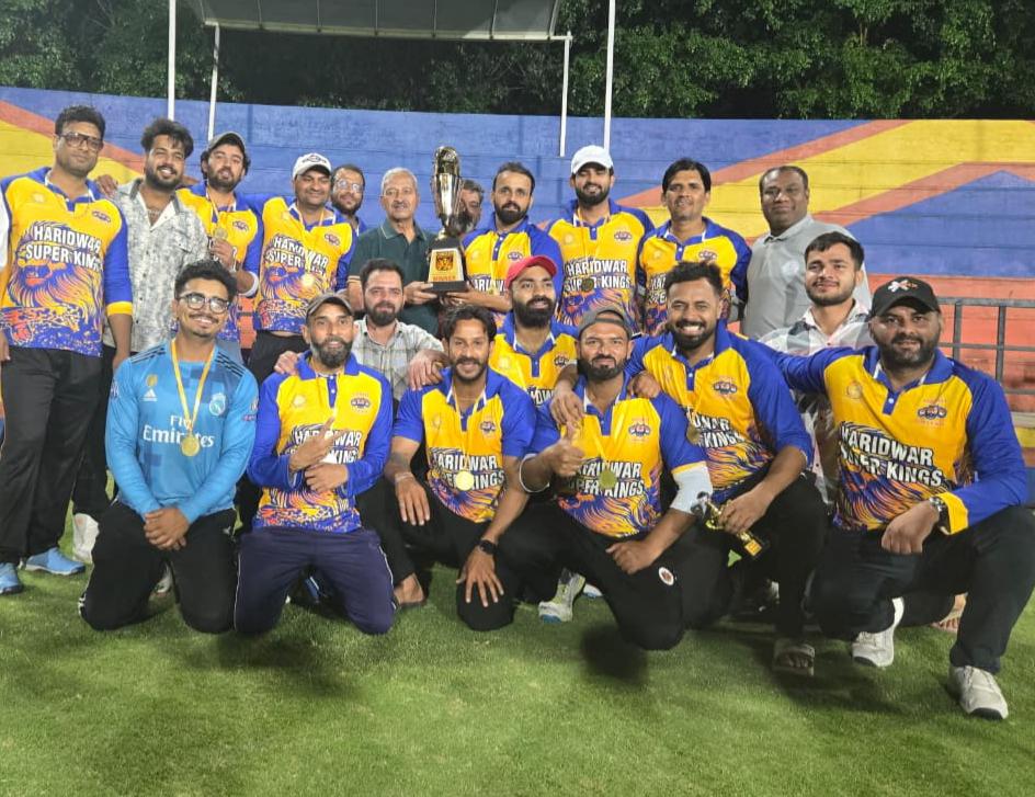 हरिद्वार। हरिद्वार स्पोर्ट्स कॉम्प्लेक्स द्वारा अयोजित प्रथम हरिद्वार कॉरपोरेट क्रिकेट चैंपियनशिप 8टीमों के बीच खेली गई।जिसका फाइनल 4अप्रैल की रात्रि में टीम केआरएस और हरिद्वार सुपर किंग के बीच खेला गया।टीम केआरएस ने पहले बल्लेबाजी की और 19 ओवर में 10 विकेट खोकर 164 रन बनाए।जिसमें विकेट कीपर विभू ने 25 गेंद में 23 रन, प्रज्ज्वल चौहान ने 17 गेंदों में 31रन,सचिन कश्यप ने 14गेंदों में 27 रन और हर्ष चौहान ने 24 गेंदों में 30रन की पारी खेली। हरिद्वार सुपर किंग की और से कप्तान शिखर पालीवाल ने चार ओवर में 38रन देकर दो और सतेंदर उर्फ राहुल ने 2 ओवर में 19 रन देकर 3 विकेट लिए।लक्ष्य का पीछा करते हुए हरिद्वार सुपर किंग ने 17.3 ओवर में 4 विकेट खोकर मैच जीत लिया।हरिद्वार सुपर किंग की और से विश्वास कश्यप ने 23गेंद में 37 रन,रोहन प्रधान ने 33गेंद में 38 रन और विकास यादव ने 38 गेंद में 74रन की विजयी पारी खेली। विकास यादव को मैन आफ द मैच चुना गया।क्रिकेट एसोसिएशन ऑफ हरिद्वार के सचिव इंद्रमोहन बड़थ्वाल मुख्य अतिथि रहे।