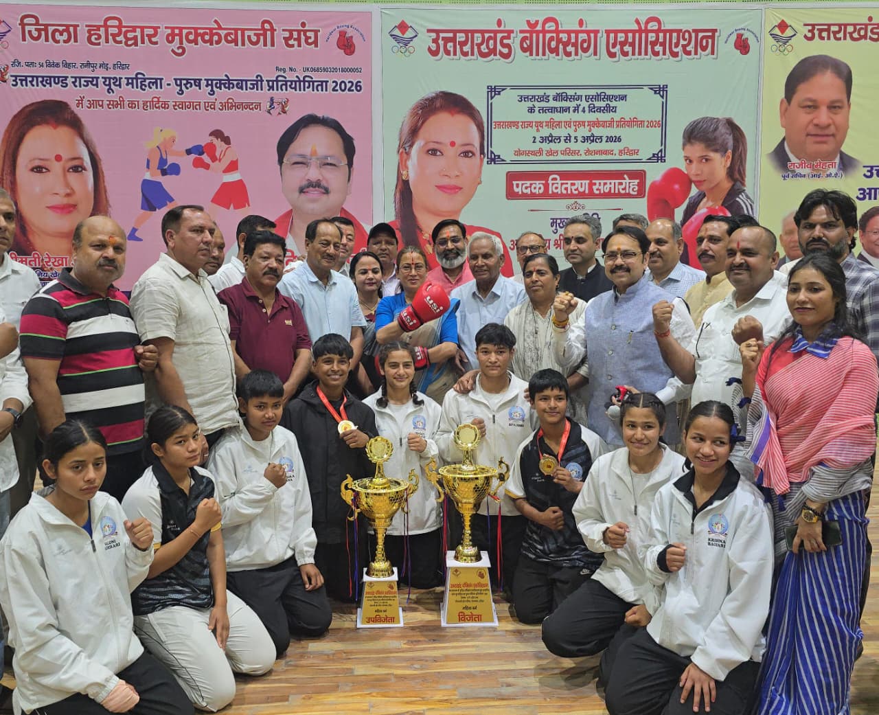 हरिद्वार। उत्तराखंड बॉक्सिंग एसोसिएशन के तत्वावधान में योगस्थली स्पोटर्स स्टेडियम रोशनाबाद में आयोजित राज्य स्तरीय बॉक्सिंग प्रतियोगिता का रविवार को समापन हो गया ।प्रतियोगिता में बालक वर्ग में चंपावत की टीम विजेता,नैनीताल की टीम उपविजेता रही। बालिका वर्ग में पिथौरागढ़ विजेता और स्पोर्टस हॉस्टल पिथौरागढ़ उपविजेता रहे।मुख्य अतिथी खेल मंत्री रेखा आर्य ने विजेता और उपविजेता टीमों को ट्राफी प्रदान की। खिलाड़ियों को शुभकामनाएं देते हुए रेखा आर्य ने कहा कि प्रतियोगिता में खिलाड़ियों ने बेहतर प्रदर्शन किया।लगातार आयोजित की जा रही खेल प्रतियोगिताओं से खिलाड़ियों को राष्ट्रीय और अंतर्राष्ट्रीय स्तर पर आगे बढ़ने के अवसर मिल रहे हैं।उन्होंने मुख्यमंत्री पुष्कर सिंह धामी उत्तराखंड को खेल भूमि के रूप में विकसित कर रहे है।लोहाघाट में स्पोर्टस कालेज निर्माण की प्रक्रिया गतिमान है।इसके अलावा गर्ल्स स्पोर्टस कालेज का निर्माण भी किया जा रहा है।बालिकाओं के लिए खेलों में आने वाला समय बेहतर होगा। राज्य सरकार की खेलों को बढ़ावा देने की नीति के चलते हर घर में एक एथलीट होगा। विधायक रवि बहादुर एवं राज्यमंत्री हेमराज बिष्ट ने भी खिलाड़ियों को बधाई और शुभकामनाएं दी।हरिद्वार बॉक्सिंग एसोसिएशन के अध्यक्ष डा.विशाल गर्ग ने कहा कि प्रतियोगिता में राज्य के 13जनपदों के खिलाड़ी शामिल हुए और शानदार खेल का प्रदर्शन किया। डा.विशाल गर्ग ने बताया कि प्रतियोगिता के बेस्ट बॉक्सर का खिताब चंपावत राहुल ने एवं बेस्ट प्रमोशन बॉक्सर का खिताब पिथौरागढ़ के समक्षचंद ने जीता।डा.विशाल गर्ग ने बताया कि बॉक्सिंग को बढ़ावा देने के लिए निरंतर प्रतियोगिताओं का किया जाएगा।इस अवसर पर नवीन चौहान,विपिन चौधरी,सुधीर जोशी,राकेश चौधरी,सुनीता चौधरी,विक्रम सिंह, अमित सैनी,सुदेश सैनी,दीपक पवार आदि मौजूद रहे।