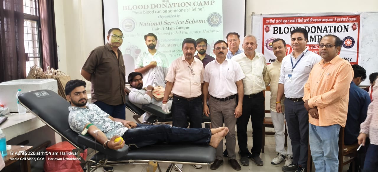 हरिद्वार। रक्तदान महादान है और यह अप्राकृतिक रूप से तैयार किया जाना संभव नहीं है।एक जरूरतमंद के जीवन में यह विशेष महत्व रखता है। सभी को जीवन में आवश्यक रूप से रक्तदान करना चाहिए। गुरुकुल कांगड़ी समविश्वविद्यालय के राष्ट्रीय सेवा योजना इकाई-1 द्वारा आयोजित रक्तदान शिविर के अवसर पर समविश्वविद्यालय की कुलपति प्रो.प्रतिभा मेहता लूथरा ने छात्रों को रक्तदान के लिए प्रेरित करते हुए व्यक्त किए। जिला रक्त केन्द्र के प्रभारी डा.रविन्द्र चौहान ने छात्रों को रक्तदान के महत्व तथा रक्तदान से होने वाले फायदों से अवगत कराया।समविश्वविद्यालय की एन.एस.एस.समन्वयक डा.संगीता मदान ने रक्तदान को मानव जीवन की रक्षा के लिए अमूल्य बताया।वनस्पति एवं सूक्ष्मजीव विज्ञान विभागाध्यक्ष प्रो.मुकेश कुमार ने छात्रों द्वारा किए गए रक्तदान की प्रशंसा की।जिससे विद्यार्थियों में सामाजिक जिम्मेदारी और मानवीय संवेदनाओं को मजबूत बनाने में बल मिलेगा।कार्यक्रम अधिकारी डॉ.विनीत कुमार विश्नोई के निर्देशन में शिविर का आयोजन वनस्पति एवं सूक्ष्मजीव विज्ञान विभाग के हॉल में आयोजित किया गया।जिसमें समविश्वविद्यालय के विभिन्न संकायों के लगभग 60छात्रों एवं कर्मचारियों ने प्रतिभाग किया।रक्तदान शिविर में चिकित्सक टीम द्वारा जांच के उपरान्त 42यूनिट रक्त एकत्रित किया गया,जांच मानकों में कमी होने के कारण 18 छात्रों को आगामी रक्तदान कार्यक्रमों में भाग लेने के लिए प्रेरित किया गया। जांच टीम में डा.रविन्द्र चौहान के नेतृत्व में काउंसलर रैना नैयर,बैबी सैनी,समन्वयक विजयश्री शर्मा,दिनेश लखेड़ा,अकलिम अंसारी,अमित कुमार,अजीत रतूड़ी एवं दीपक का सहयोग सराहनीय रहा। कार्यक्रम अधिकारी डा.विनित कुमार विश्नोई ने स्वयं रक्तदान करते हुए कार्यक्रम का शुभारम्भ एवं छात्रों को प्रेरित किया। रक्तदाताओं में प्रमुख रूप से अमरीश,विकास कुमार, धर्मेन्द्र सिंह बिष्ट,अभिषेक भट्ट,मनोज सिंह,कार्तिक सैनी,वैभव तोमर,हर्षित जोशी,सनी,विनायक कंबोज, उत्कर्ष,अमन चोधरी,दीपक,ऋतिक पंवार,आदित्य चौधरी,प्रणव त्यागी,सागर कुमार,आयुष ठाकुर, सुशांत चौहान,सूर्यांश नामदेव सहित विभिन्न छात्रों ने रक्तदान किया।इस अवसर पर उपकुलसचिव डा.श्वेतांक आर्य,सहायक कुलसचिव,शिक्षा अनुभाग डा.पंकज कुमार पाल,डा.संदीप कुमार,डा.चिरंजीव बनर्जी,डा.अजीत तोमर,जनसम्पर्क अधिकारी डा.शिव कुमार चौहान,कुलभूषण शर्मा,हेमन्त सिंह नेगी,मनोज कुमार,कुलदीप,राजेन्द्र सिंह,राजकुमार सहित विभिन्न कर्मचारी उपस्थित रहे।